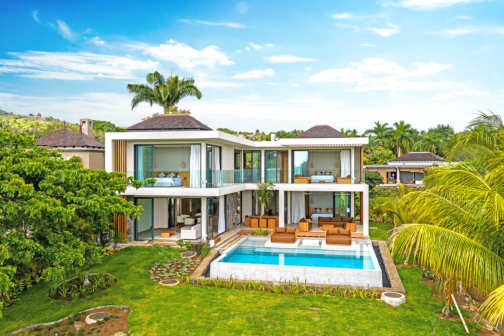 Située au cœur du sud préservé de l’Île Maurice, la Villa bénéficie d’un environnement rare entre lagon turquoise, golf et collines verdoyantes. Son emplacement combine intimité et proximité immédiate avec les services premium du domaine (hôtels 5 étoiles, spas, golfs, C Beach Club, réserve naturelle UNESCO).